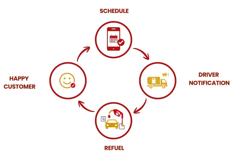 Instead of waiting in line, losing productivity, or dealing with fuel cards, we bring the pump to you with licensed, insured, and eco-safe mobile units. Our technology makes the entire process effortless — customers can schedule deliveries 24/7, track drivers in real time, and receive instant digital receipts.