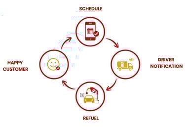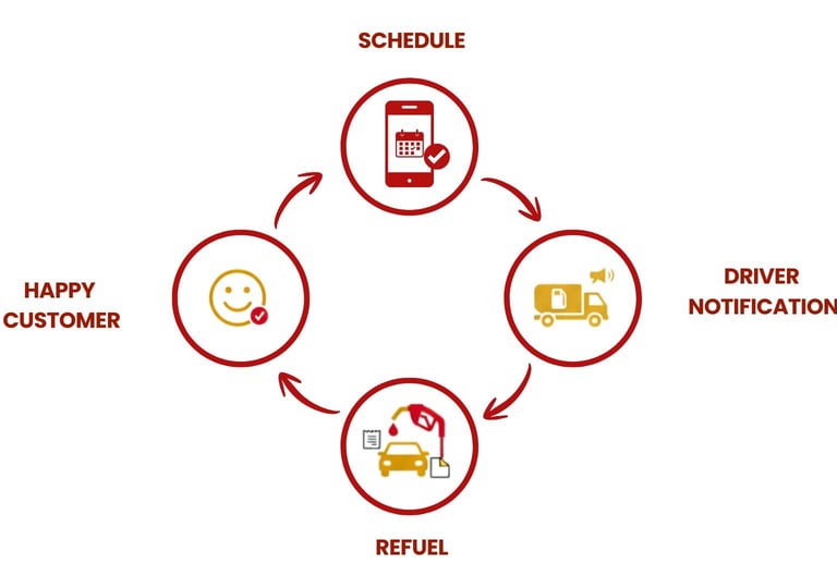 Instead of waiting in line, losing productivity, or dealing with fuel cards, we bring the pump to you with licensed, insured, and eco-safe mobile units. Our technology makes the entire process effortless — customers can schedule deliveries 24/7, track drivers in real time, and receive instant digital receipts.
